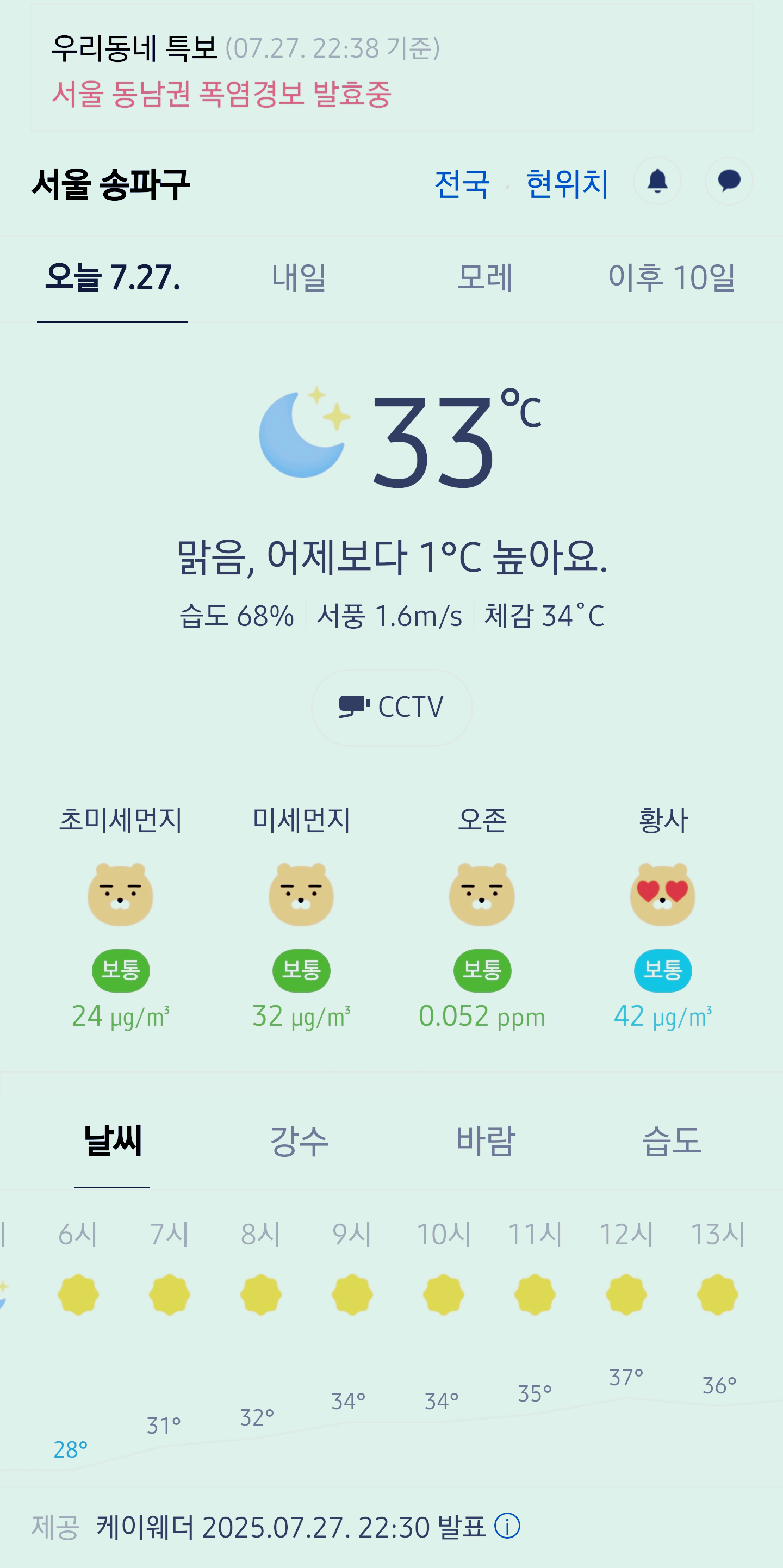 서울 강남 송파구 날씨, 서울 강남구 오늘의 날씨, 송파구 오늘 날씨, 오늘의 날씨, 오늘 날씨, 2025 0727, 초미세먼지, 미세먼지, 황사, 자외선