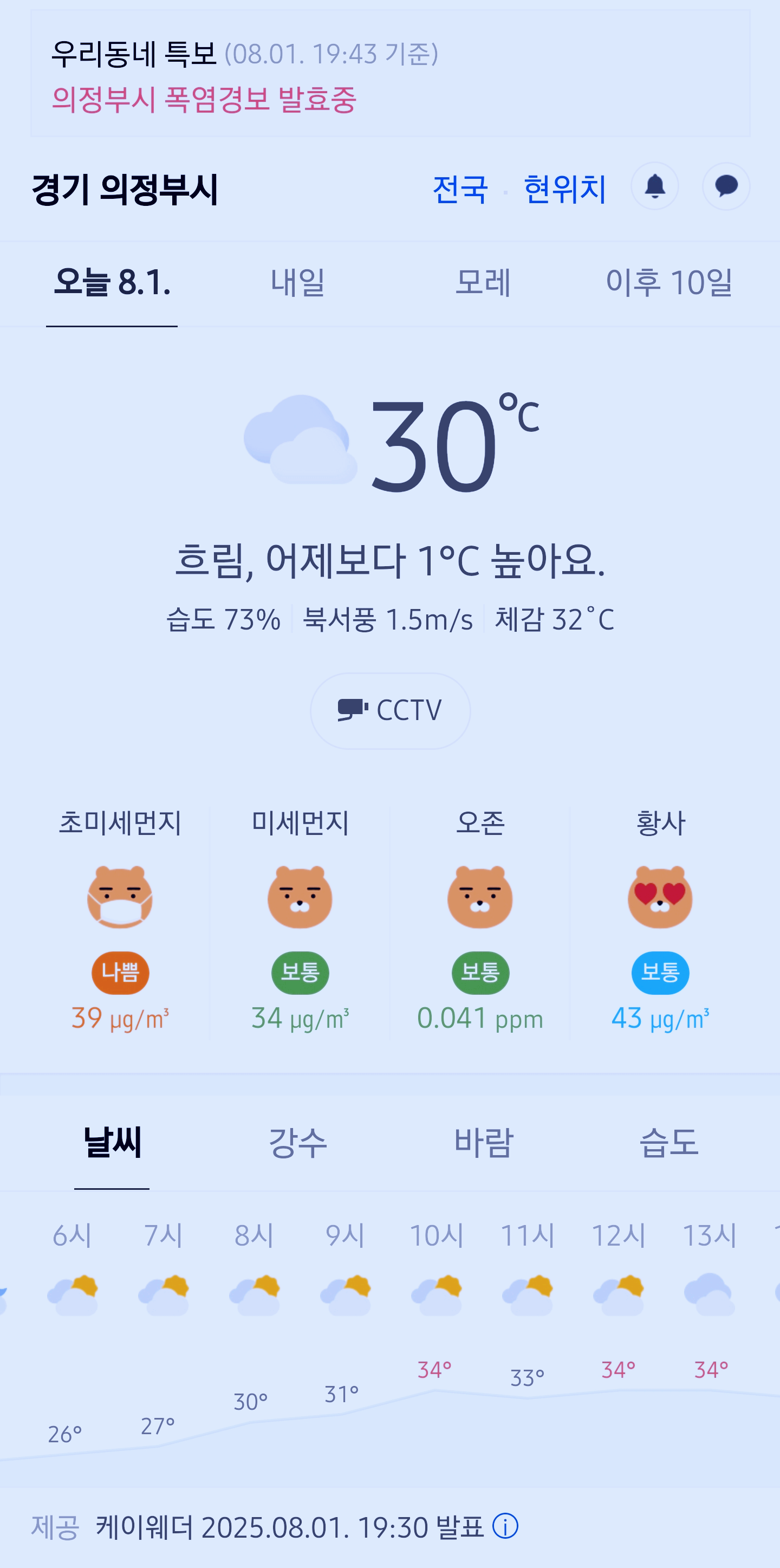 >>>경기도 의정부시 날씨 2025년 8월 1일. 의정부 날씨, 오늘의 날씨, 폭염경보 발효중, 오늘 날씨, 2025 0801, 초미세먼지, 미세먼지, 황사, 자외선