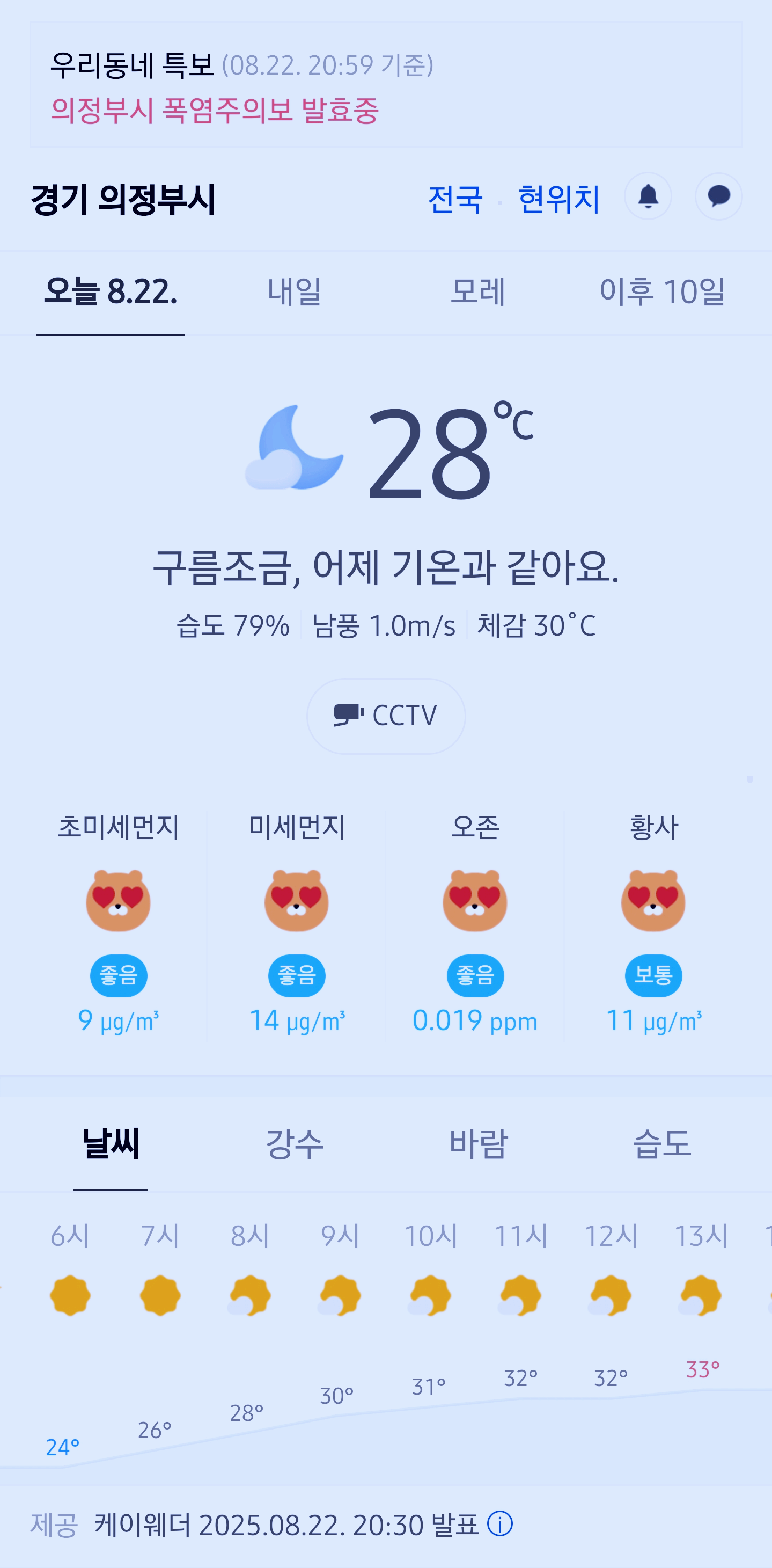 >>>경기도 의정부시 날씨 2025년 8월 22일. 의정부 날씨, 오늘의 날씨, 폭염주의보 발효중, 오늘 날씨, 2025 0822, 초미세먼지, 미세먼지, 황사, 자외선