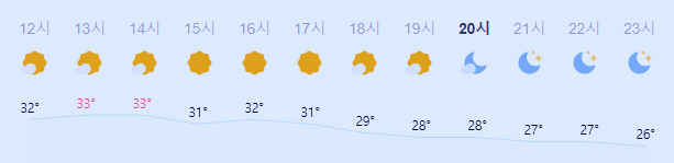 최저기온 24도(오전), 최고기온 33도(오후)