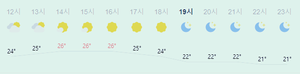 최저기온 22(오전, 오후), 최고기온 25도(오전), 24도(오후)