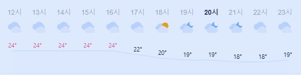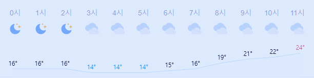 최저기온 14도(오전), 최고기온 24도(오전, 오후)