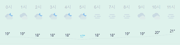 최저기온 17도(오전), 최고기온 24도(오후)