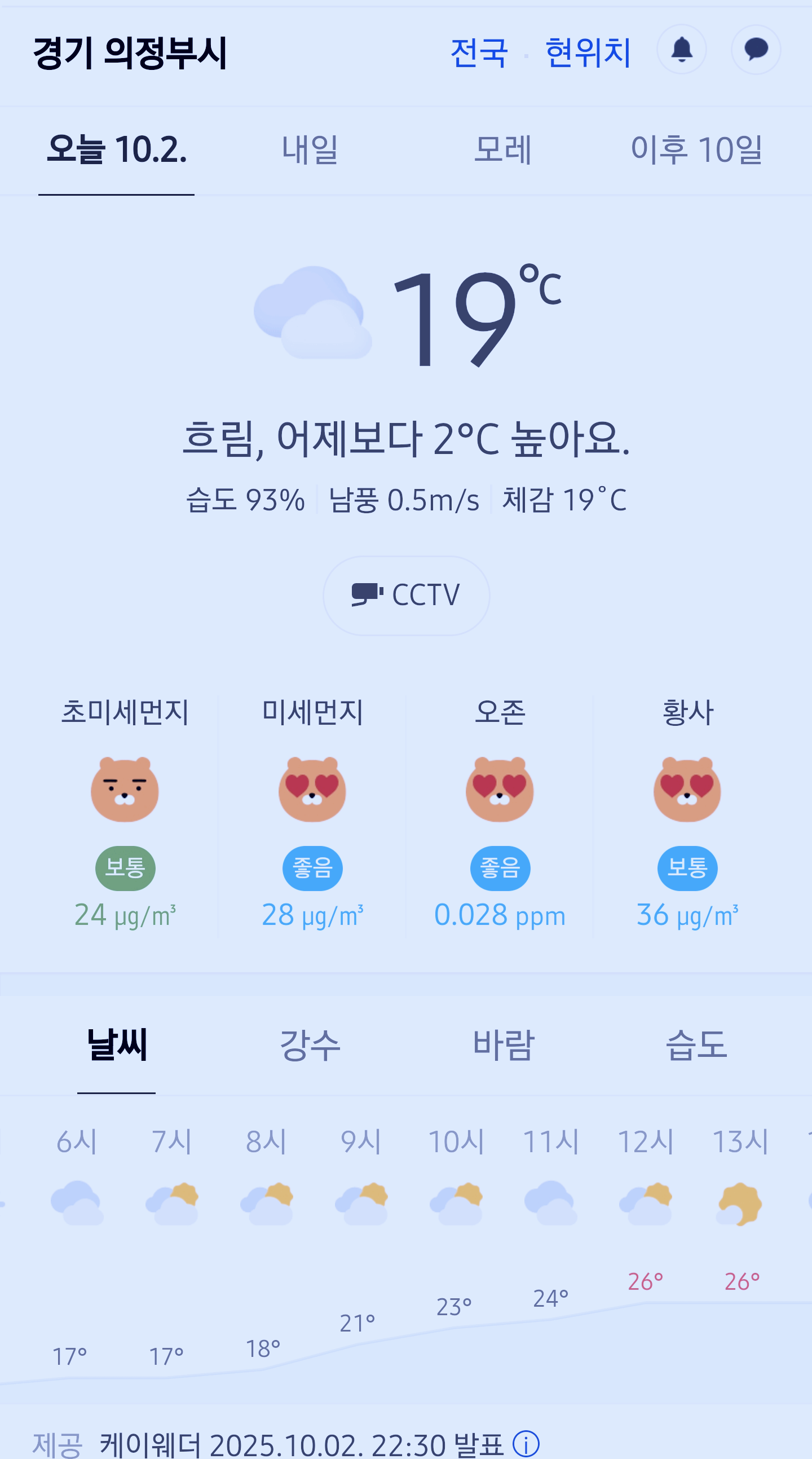 >>>경기도 의정부시 날씨 2025년 10월 2일. 의정부 날씨, 오늘의 날씨, 오늘 날씨, 2025 1002, 초미세먼지, 미세먼지, 황사, 자외선