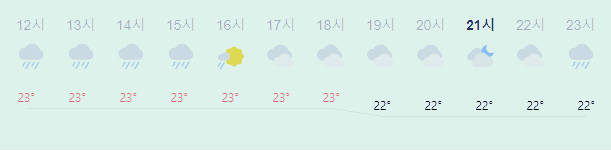 * 눈비 올 확률은 위 이미지에서 시간별 기상 상태 참조