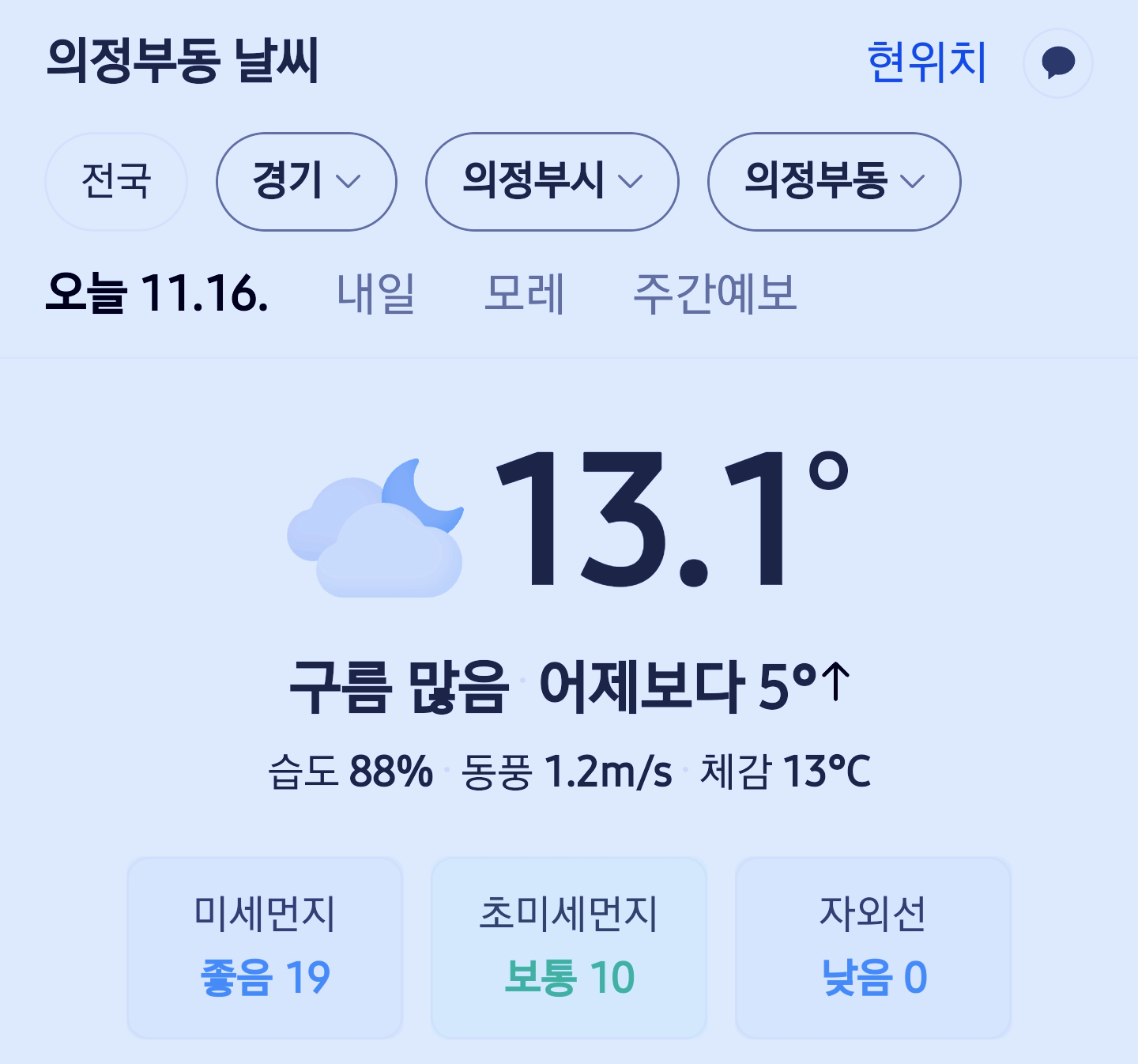 >>>경기도 의정부시 날씨 2025년 11월 16일. 의정부 날씨, 오늘의 날씨, 오늘 날씨, 2025 1116, 초미세먼지, 미세먼지, 황사, 자외선