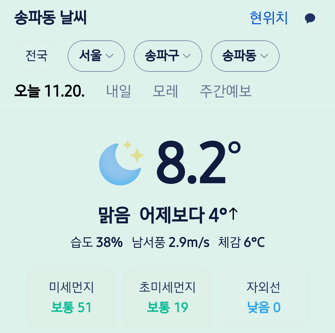 >>>서울 강남 송파구 날씨 2025년 11월 20일. 서울 강남구 오늘의 날씨, 오늘 날씨, 2025 1120, 초미세먼지, 미세먼지, 황사, 자외선