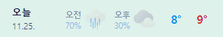* 눈비 올 확률은 위 이미지에서 오전, 오후 기상 상태 참조