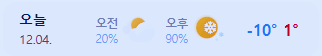 최저기온 -10도(오전), 최고기온 1도(오후)
