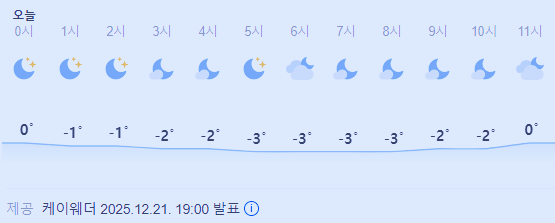 >>>>오늘의 날씨 ☀ 카테고리의 글 | 2025. 12. 21. 20:10