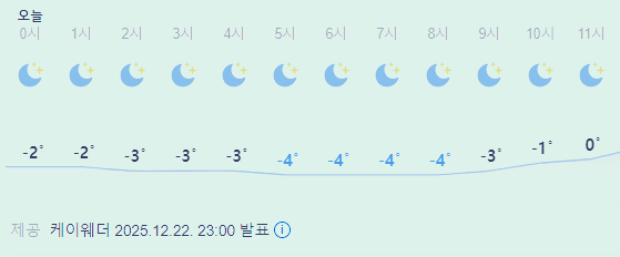>>>>오늘의 날씨 ☀ 카테고리의 글 | 2025. 12. 22. 23:50