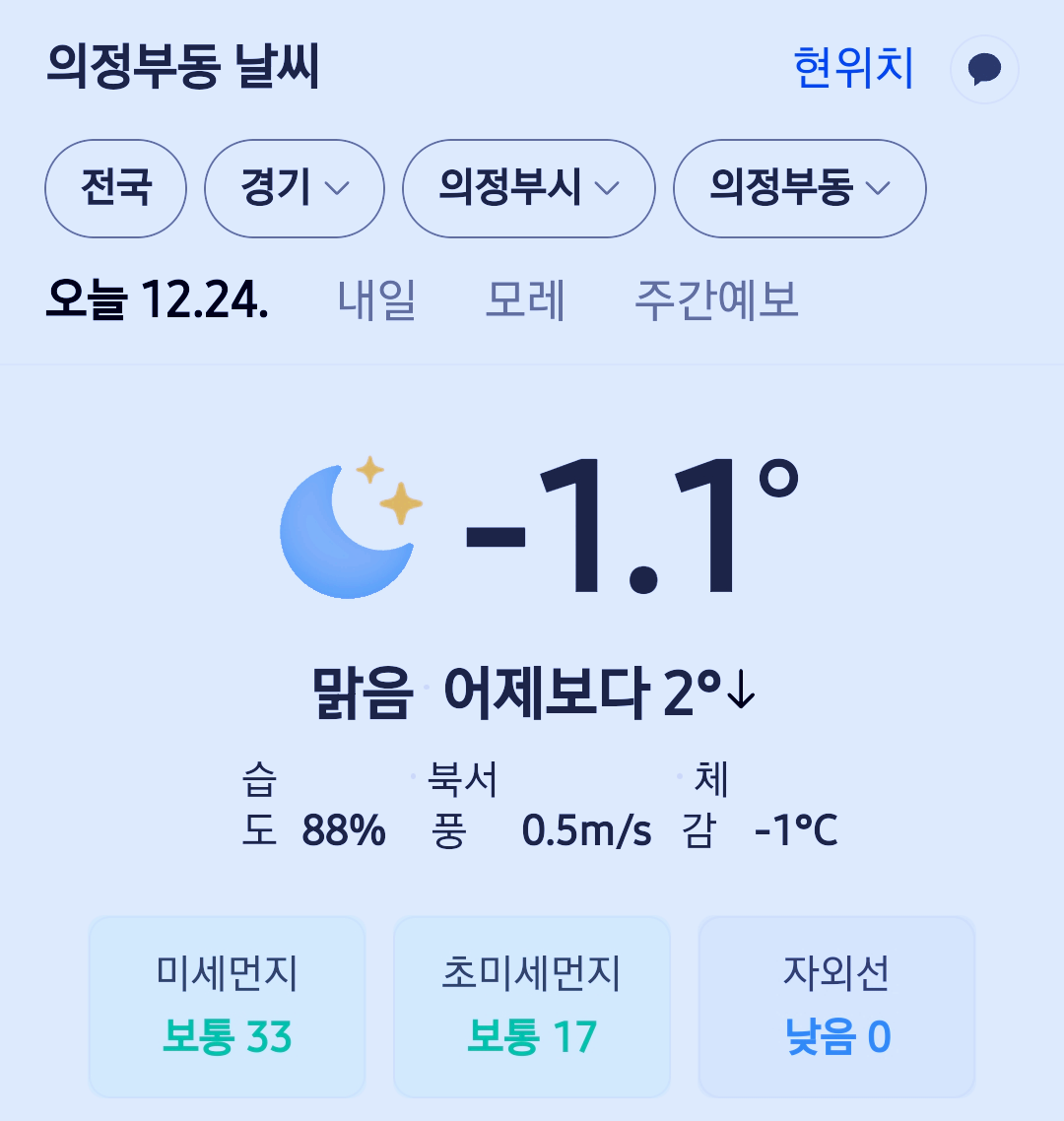 >>>경기도 의정부시 날씨 2025년 12월 24일. 의정부 날씨, 오늘의 날씨, 오늘 날씨, 2025 1224, 초미세먼지, 미세먼지, 황사, 자외선