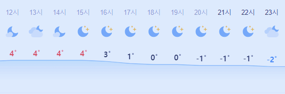 최저기온 1도(오전), -2도(오후), 최고기온 4도(오후)