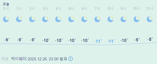 >>>>오늘의 날씨 ☀ 카테고리의 글 | 2025. 12. 26. 23:52