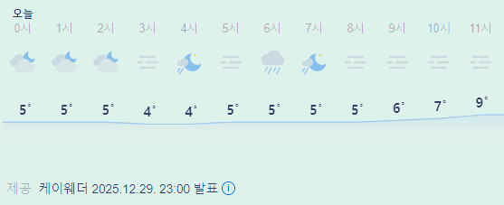 >>>>오늘의 날씨 ☀ 카테고리의 글 | 2025. 12. 29. 23:45