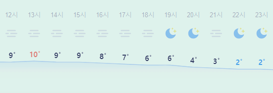 최저기온 4도(오전), 2도(오후), 최고기온 10도(오후)