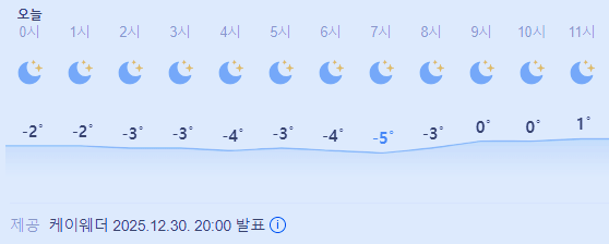 >>>>오늘의 날씨 ☀ 카테고리의 글 | 2025. 12. 30. 20:53