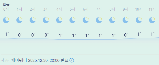 >>>>오늘의 날씨 ☀ 카테고리의 글 | 2025. 12. 30. 20:55