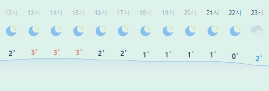 최저기온 -1도(오전), -2도(오후), 최고기온 3도(오후)