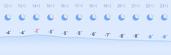 최저기온 -7도(오전), -9도(오후), 최고기온 -2도(오후)